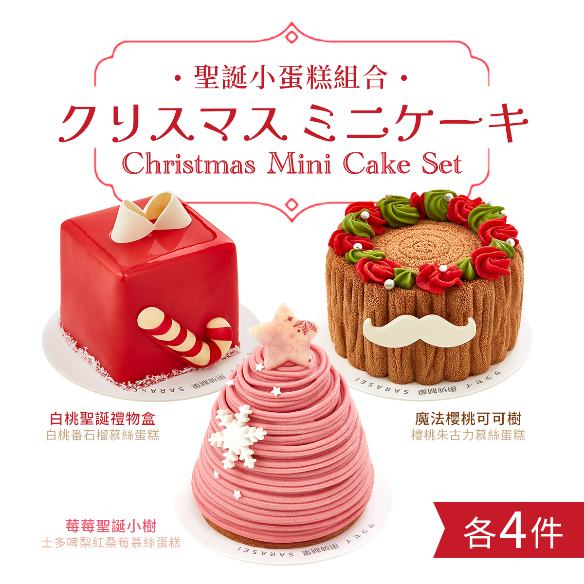 白桃聖誕禮物盒 | 白桃番石榴慕絲蛋糕 x4